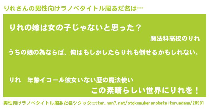 | 女子向けラノベタイトル風あだ名 | 『りれ伯爵の花嫁』『りれの玉の輿計画!』 |