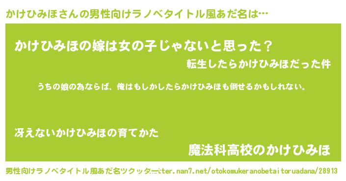 | 女子向けラノベタイトル風あだ名 | 『かけひみほの婚約者』 |