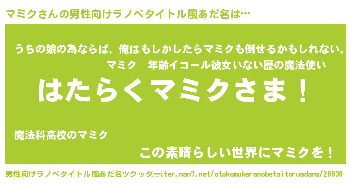 | 胡散臭い通販商品みたいなあだ名 | 『世界が平和になる高級そうな絵画…その名も「マミク」』 |