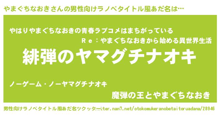 | 女子向けラノベタイトル風あだ名 | 『シンデレラやまぐちなおき家の靴箱館』 |