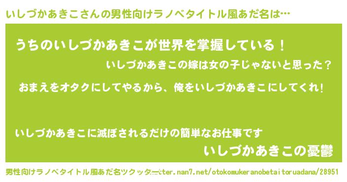 | 胡散臭い通販商品みたいなあだ名 | 『お金では代えられないイリジウム磁石…その名も「いしづかあきこ」』 |