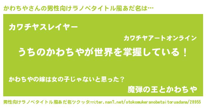 | 胡散臭い通販商品みたいなあだ名 | 『あなたにだけ特別に提供する限定10本のレアな日本酒…その名も「かわちや」』 |