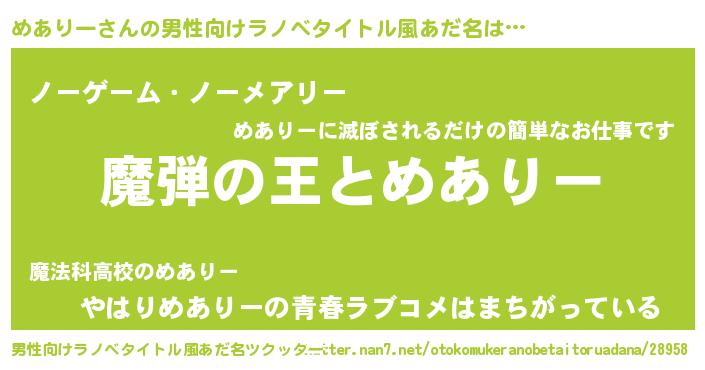 | ヒーロー風カッコイイあだ名 | 『仮面メアダー』『慈愛の使者めありー』 |