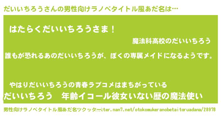 | 女子向けラノベタイトル風あだ名 | 『だいいちろうの契約王妃』 |