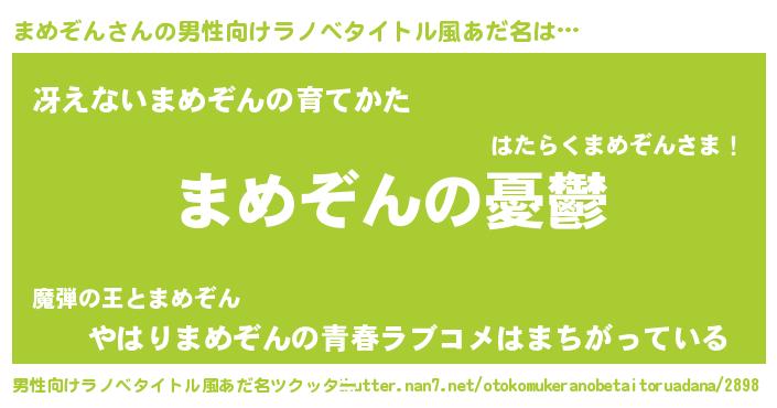 | 女子向けラノベタイトル風あだ名 | 『(仮)まめぞんのやんごとなき事情』 |