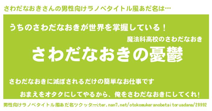 | 女子向けラノベタイトル風あだ名 | 『(仮)さわだなおきのやんごとなき事情』 |
