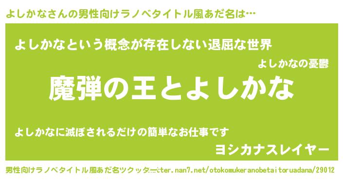 | ファンタジー風あだ名 | 『ヴァルヨシーナ』『ヨシディッシュ』 |