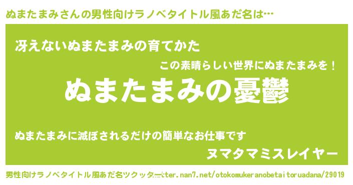 | 女子向けラノベタイトル風あだ名 | 『(仮)ぬまたまみのやんごとなき事情』 |