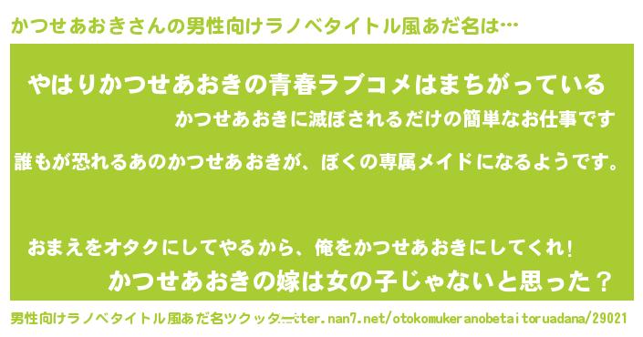 | 意味不明あだ名 | 『永久保存かつせあおき』 |