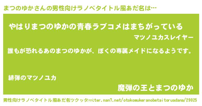 | ヒーロー風カッコイイあだ名 | 『ネオマツノユカ』『仮面マツダー』 |