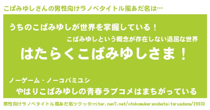 | 伝説のあだ名 | 『秘められし陰陽師こばみゆし』 |