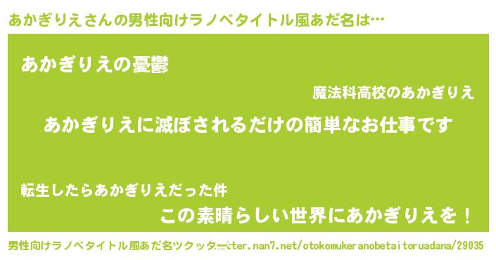 | 胡散臭い通販商品みたいなあだ名 | 『モテモテ間違いなしブレスレット…その名も「あかぎりえ」』 |