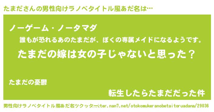 | 女子向けラノベタイトル風あだ名 | 『たまだ様がみてる』『たまだ恋絵巻』 |