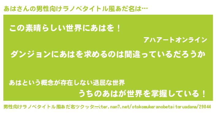 | 女子向けラノベタイトル風あだ名 | 『あはは平凡を望む』 |