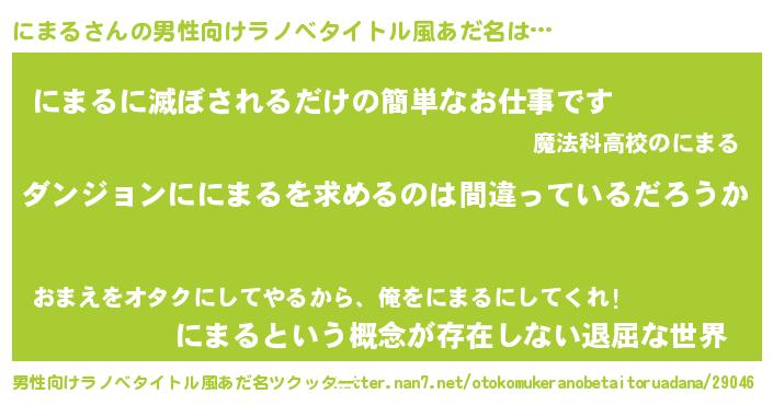| 萌えアニメ | 主人公(にまる)のあだ名『 にまちん』 |