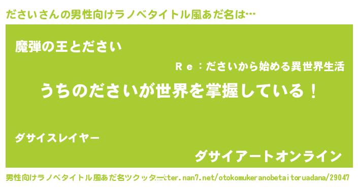| 意味不明あだ名 | 『住所不定無職ださい(62歳)』『自称ださい』 |