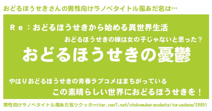 | 胡散臭い通販商品みたいなあだ名 | 『必ず成功する霊験あらたかなお札…その名も「おどるほうせき」』 |