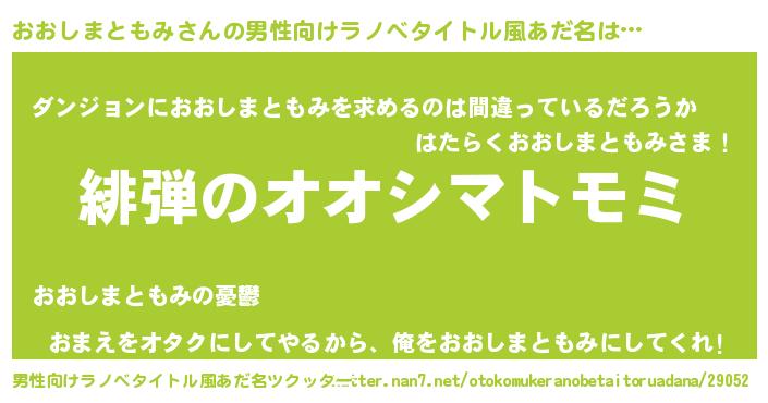 | 女子向けラノベタイトル風あだ名 | 『シンデレラおおしまともみ家の靴箱館』 |