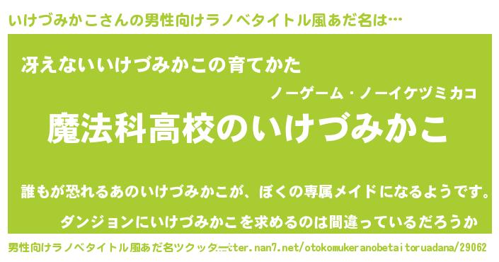 | 女子向けラノベタイトル風あだ名 | 『いけづみかこなんてお断りですっ。』 |