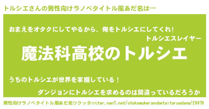 | ヒーロー風カッコイイあだ名 | 『サイバー戦士トルシエ』『幻影騎士トル』 |