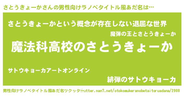| 女子向けラノベタイトル風あだ名 | 『さとうきょーかなんてお断りですっ。』 |