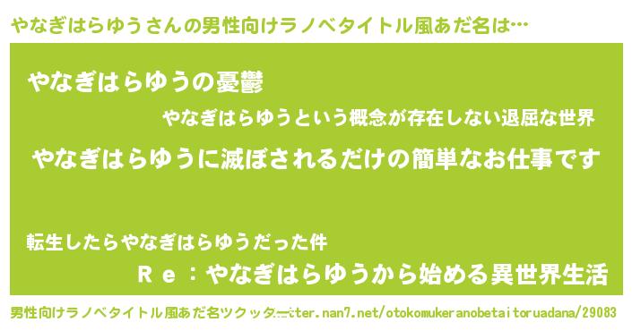 | ヘコむあだ名 | 『やなっふぃ~』『やなぎはらゆう(笑)』 |
