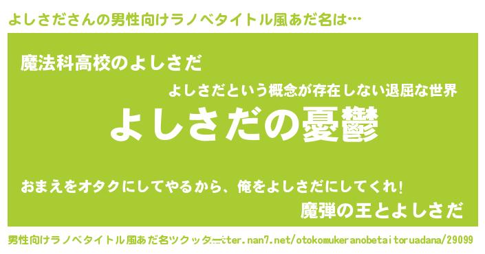 | 胡散臭い通販商品みたいなあだ名 | 『モテモテ間違いなしブレスレット…その名も「よしさだ」』 |