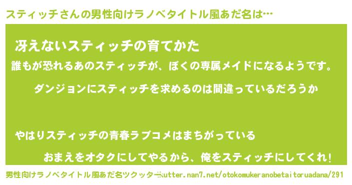 | 女子向けラノベタイトル風あだ名 | 『スティッチは平凡を望む』 |