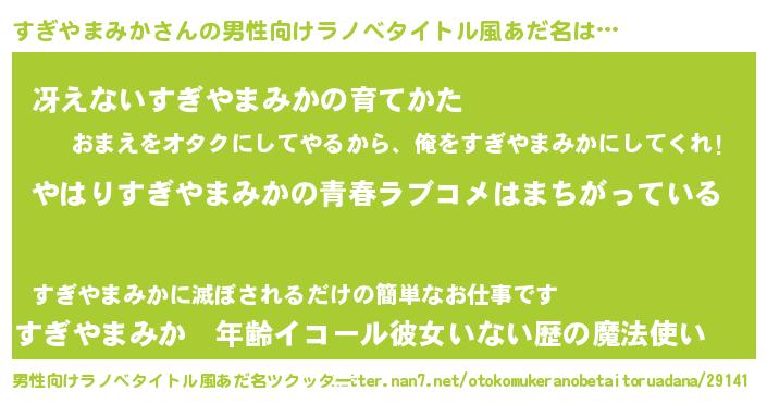 | 女子向けラノベタイトル風あだ名 | 『すぎやまみかの雑貨屋さん』 |