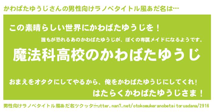 | ヘコむあだ名 | 『かわばたゆうじ(爆)』『かわもー』 |