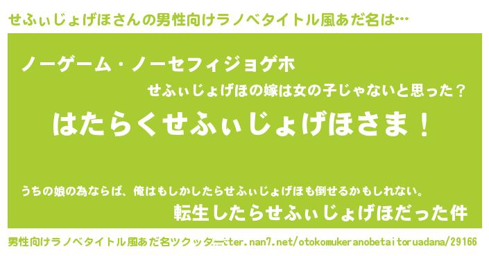 | ヘコむあだ名 | 『せふを』『酢こんぶ』『せふにー』 |