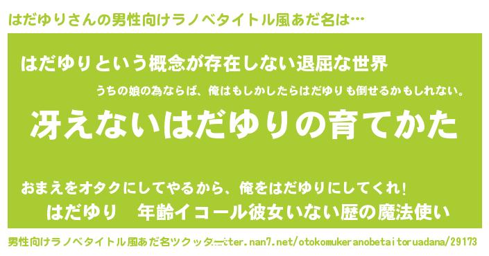 | 胡散臭い通販商品みたいなあだ名 | 『来世でも幸せになれる健康食品…その名も「はだゆり」』 |
