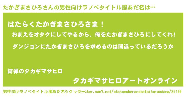| 胡散臭い通販商品みたいなあだ名 | 『信頼と実績のネックレス…その名も「たかぎまさひろ」』 |