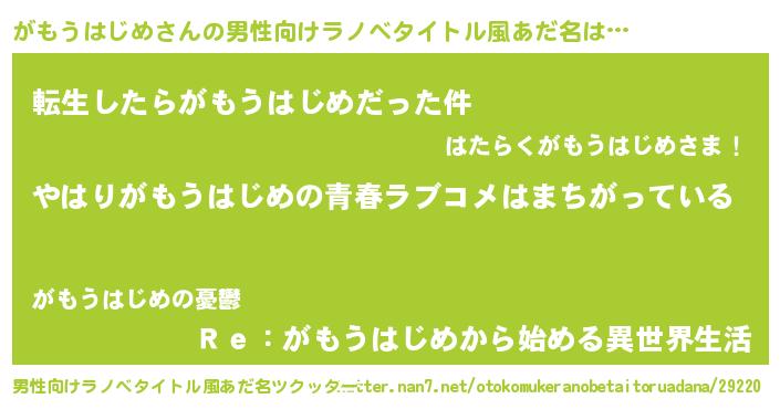 | 意味不明あだ名 | 『がもうはじめフォーエバー』 |