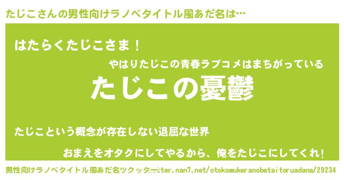 | 女子向けラノベタイトル風あだ名 | 『たじこ姫と円卓の騎士』 |
