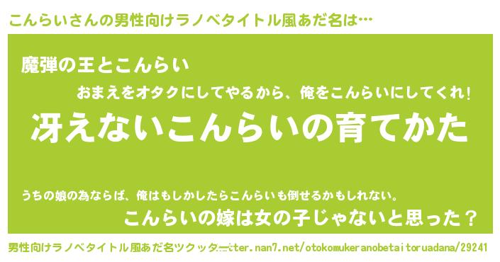 | 意味不明あだ名 | 『住所不定無職こんらい(9歳)』 |