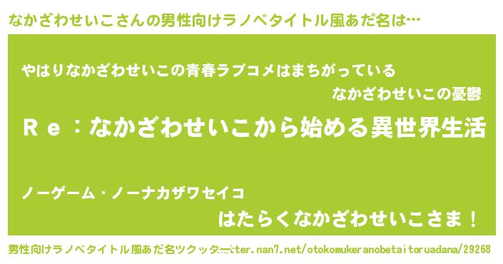 | 意味不明あだ名 | 『自称なかざわせいこ』 |