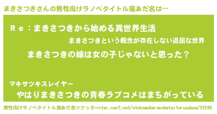 | 女子向けラノベタイトル風あだ名 | 『まきさつき様がみてる』 |