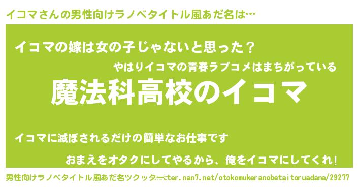 | 女子向けラノベタイトル風あだ名 | 『イコマアンティーク』『イコマ恋絵巻』 |