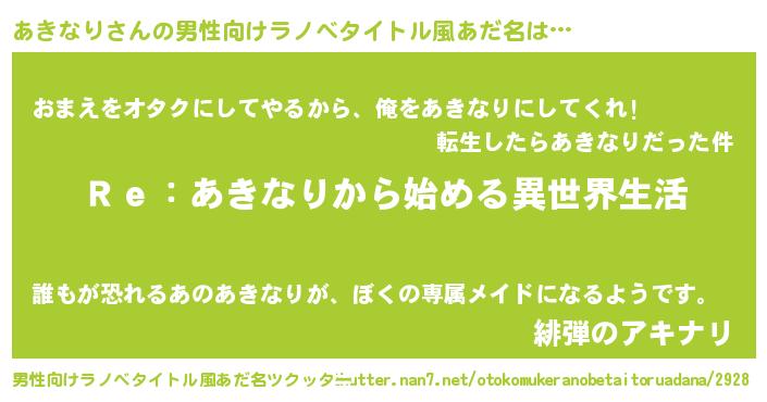| 女子向けラノベタイトル風あだ名 | 『あきなりストレイドッグス』 |