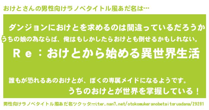 | 女子向けラノベタイトル風あだ名 | 『闇のおけと』『おけとは平凡を望む』 |