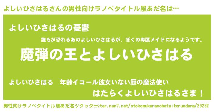 | ヘコむあだ名 | 『よしもー』『よしいひさはる(苦笑)』 |