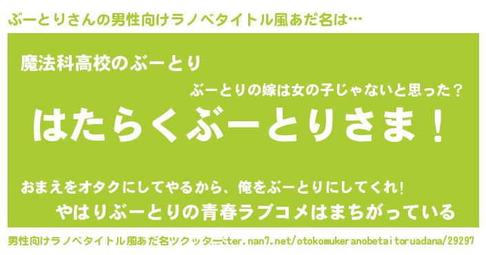 | 意味不明あだ名 | 『自称ぶーとり』『ぶーとりフォーエバー』 |