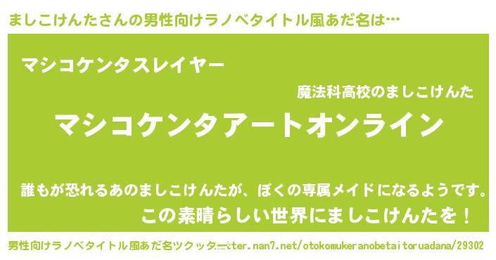 | 肩書あだ名 | 『ましこけんた御曹司』 |