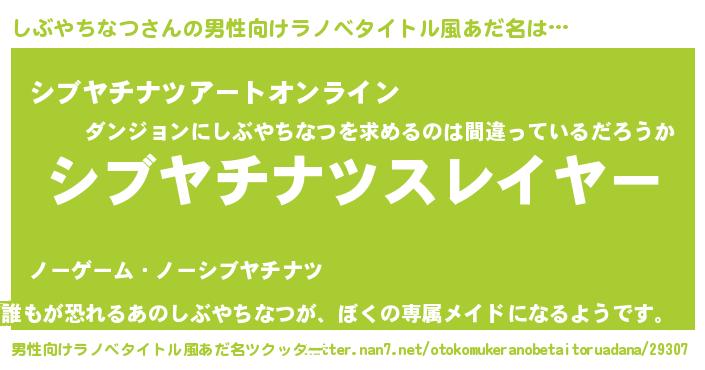 | 胡散臭い通販商品みたいなあだ名 | 『必ず成功する霊験あらたかなお札…その名も「しぶやちなつ」』 |