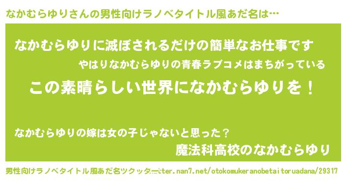 | 意味不明あだ名 | 『住所不定無職なかむらゆり(65歳)』 |