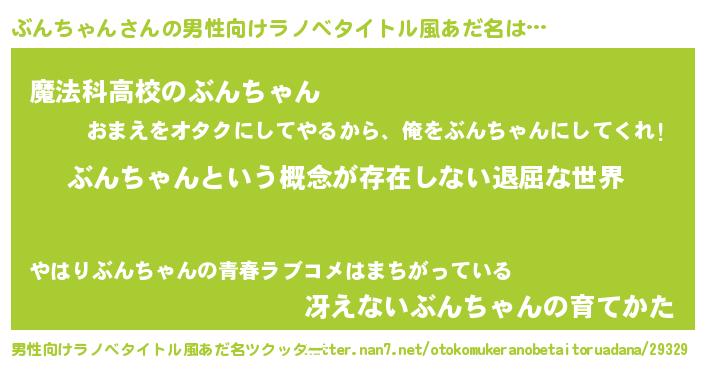 | 女子向けラノベタイトル風あだ名 | 『ぶんちゃんの契約王妃』 |