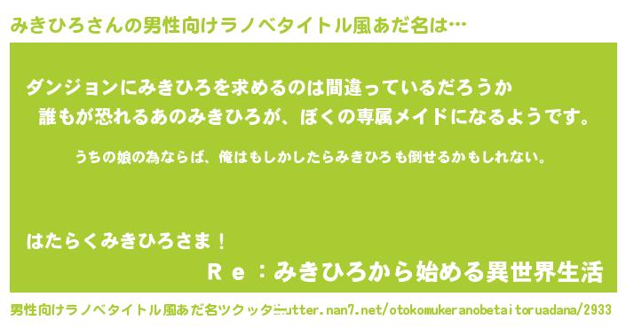 | 女子向けラノベタイトル風あだ名 | 『みきひろ伯爵の花嫁』 |