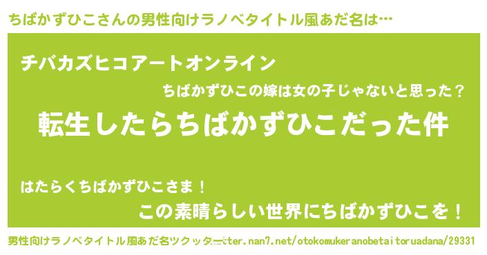 | 女子向けラノベタイトル風あだ名 | 『ちばかずひこの玉の輿計画!』 |