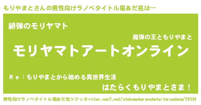 | 女子向けラノベタイトル風あだ名 | 『誰かこのもりやまとを説明してください! ~契約から始まるウェディング~』 |